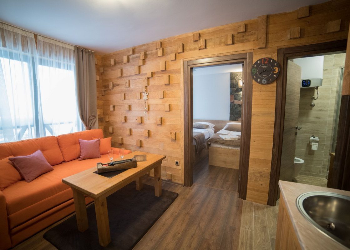 Svaki od naših apartmana sadrži TV sa satelitskim programima, WI-FI uređaj, kuhinju sa frižiderom i posuđem. Prostrane spavaće sobe sadrže ormare, kao i rezervne posteljine, u kupatilima su dostupni tuš kabina, wc, umivaonik i peškiri. Takođe gostima su na raspolaganju skijašnica i lift. Smještajne jedinice se veoma efikasno griju na struju, i po potrebi sa kamin pećima.