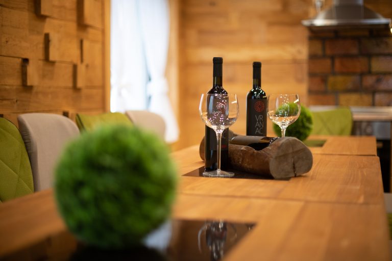 Objekat se sastoji od nekoliko apatmana kapaciteta 3+2 osobe, nekoliko studio apartmana za 2+1 osobu i 3 veća apartmana. Svaki apartman ima kamin peć i grijanje na struju, dok su drva za kamin obezbijeđena. Pogodna je za veće društvo gdje možete iznajmiti odvojene apartmane, a zajednička druženja su nezaboravna u konobi u prizemlju.
